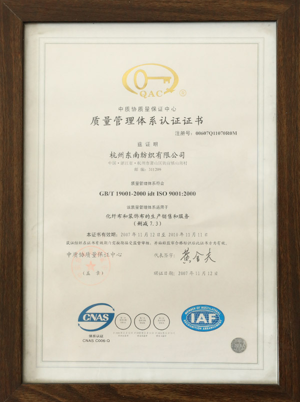 質(zhì)量管理體系證書